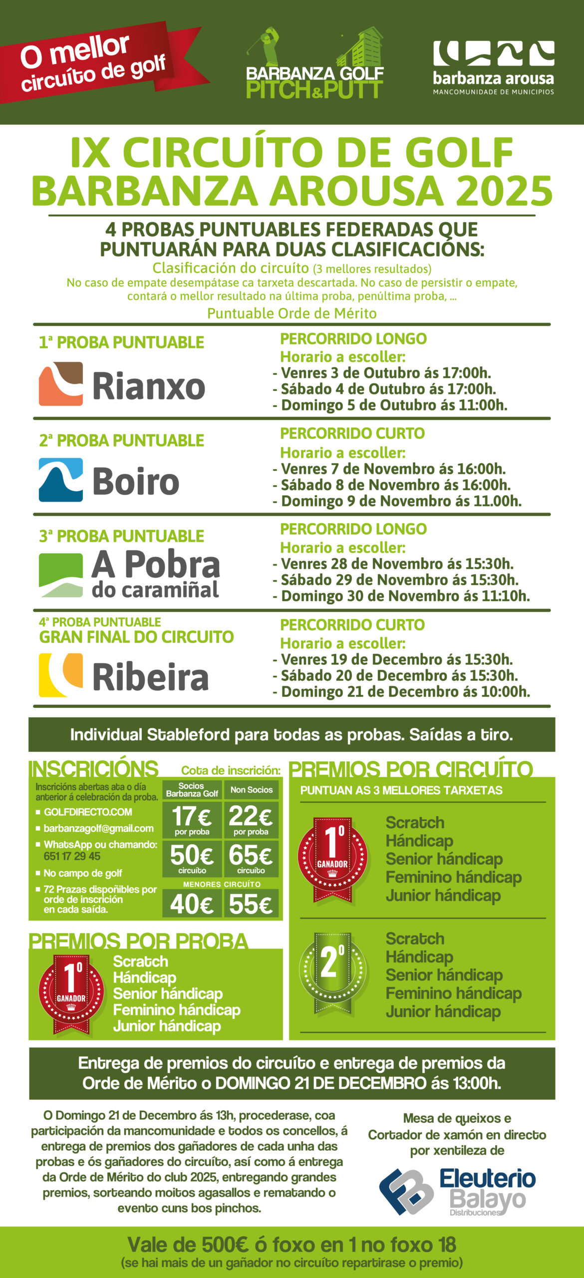 - Por e-mail en barbanzagolf@gmail.com