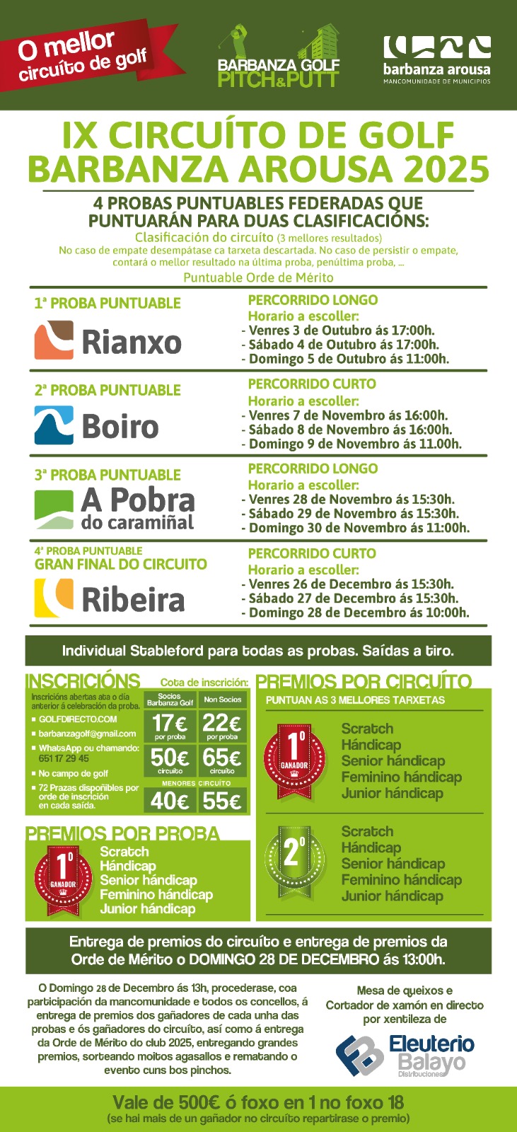 - Por e-mail en barbanzagolf@gmail.com