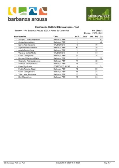 En categoría hándicap, con un magnífico resultado de 46 puntos, do concello de Muros, impuxose Javier Pola!!!